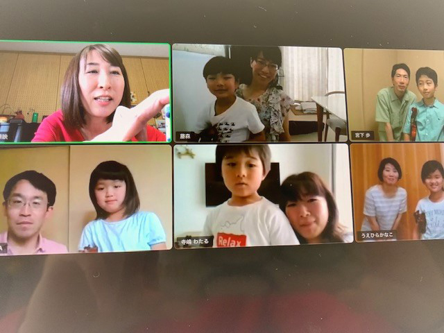 それぞれのご自宅から、保護者の皆様大勢の方がご参加くださいました。鈴木鎮一先生の著書、「愛に生きる」の読み合わせ、そこから平波自身が感じることをお話しいたしました。そして、皆様からも一言ずつ、日頃感じていることなどお話しいただき、最後はビンゴ大会! 第2回となる今回も時間が足りないくらいの楽しいひとときとなりました。皆様との時間は日頃の疲れも吹き飛ぶくらい、大切な、幸せな時間です。第3回(いつ?)今から楽しみです!