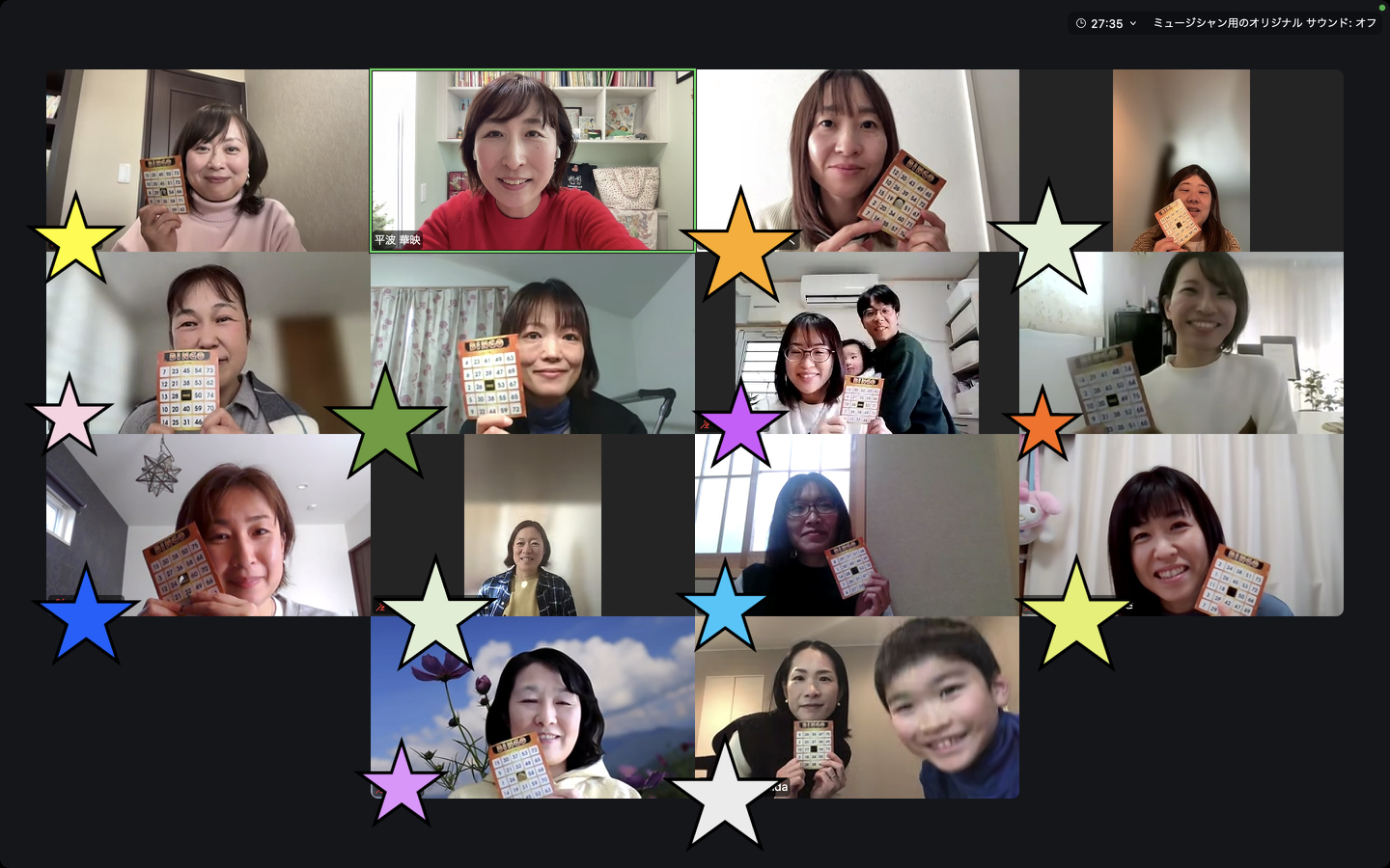前回に引き続き、ビンゴ大会では、紹介の時間がとっても楽しくて、全部欲しくなってしまいました!気になるお品物ばかりで選ぶのが難しかったです💦先生のお話を夢中でお聴きしていたら、あっという間の2時間でした。たくさんの気づきのある、心温まる時間をありがとうございました。(鈴月 年長、陽咲 年少:母)