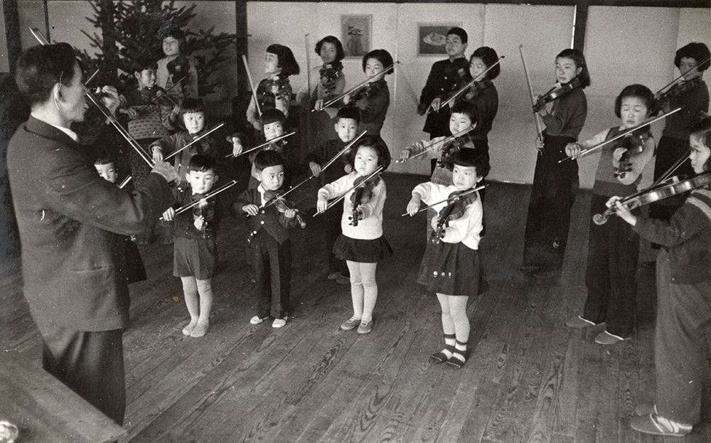 そして1967年に全国的な協力により 「才能教育会館」 が完成。その資金作りの一部として支部のお母様たちがバザーをしたり、熱いご飯で手をまっ赤にしながら、おにぎりを作って売ったりという苦労もありました。1978 年には鈴木先生の理念に感銘を受けたアメリカの実業家、スミス氏の寄付により「スズキ・メソード研究所」 が落成。文字どおり、“子供の能力”の研究の場とされ、支部の教室が移転し、現在に至っています。