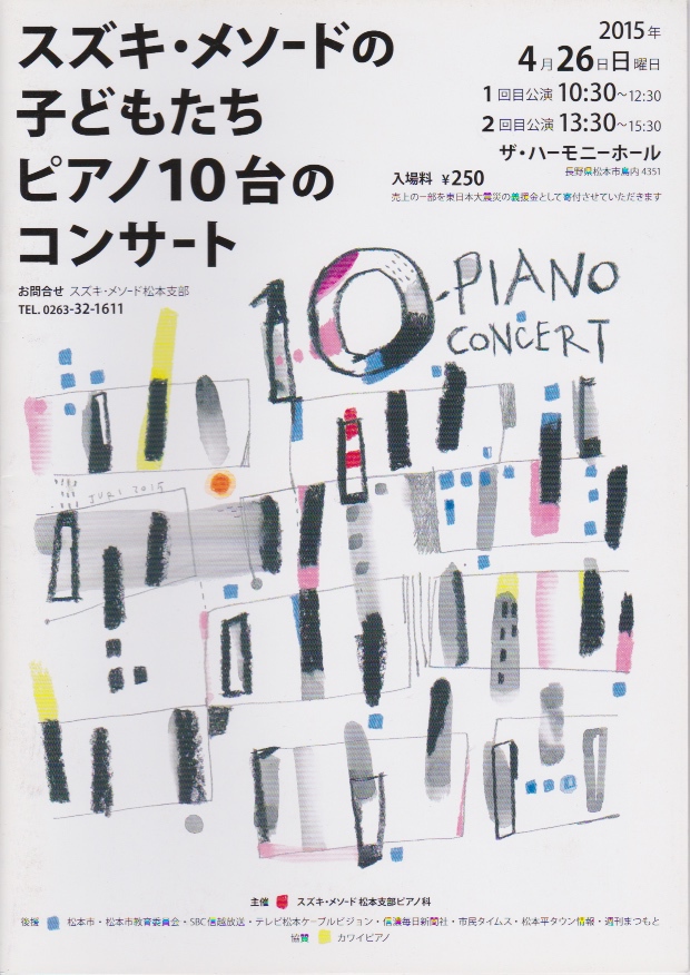 | 2015年 | 4月26日 | スズキ・メソードの子どもたち ピアノ10台のコンサート | ザ・ハーモニーホール(松本市音楽文化ホール) |