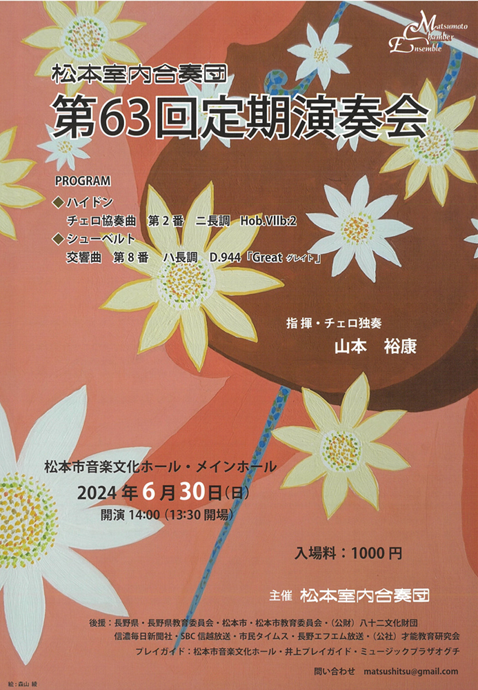 「数ヵ月前にチェロを習い始めたばかりですが、山本先生のコンサートは初めて拝聴いたしました。 「聴」惚れでした!流石!!録音では楽しさが伝わりがたい曲で、生演奏を聴ける幸せを感じました。 演奏者として、山本先生は高度なテクニックと緻密かつ情感豊かな表現、心の奥深くに染み透るような美しさがあると実感しました。 また、指揮者としても松本室内合奏団の方々との演奏は素晴らしいだと思います。 もっともっと聴きたかったです」