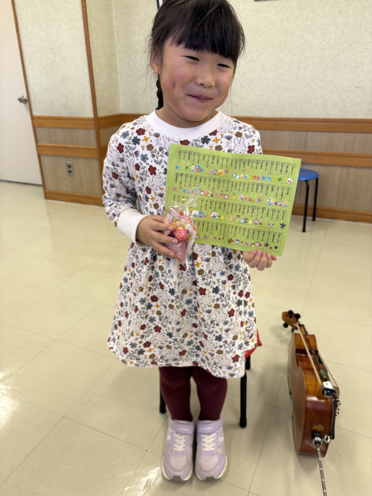 グループレッスンとミニコンサートの後には、おやつタイムとビンゴゲームで盛り上がりました。この日グループレッスンデビューの子も数人いましたが、よくがんばりましたね。